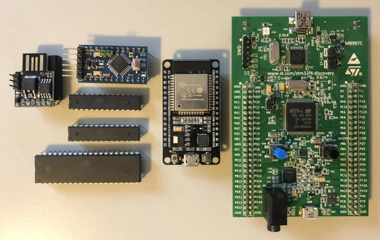 Abbildung: Einzel MCs und MC-Entwicklungsboards unterschiedlicher Generationen (Bildquelle: HK2020)