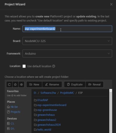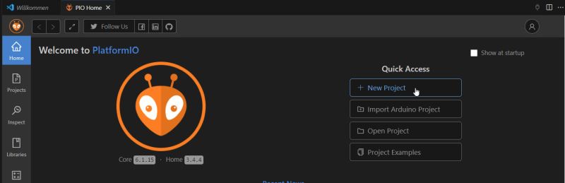 Unter dem PlatformIO-Icon wird mit Hilfe des Assistenten
