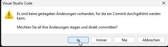 commitet. Bevor der Vorgang abgeschlossen wird, muss eine Commit-Meldung