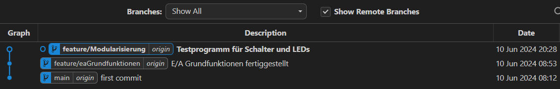 GitGraph zeigt die erstellten Softwareversionen an - bei