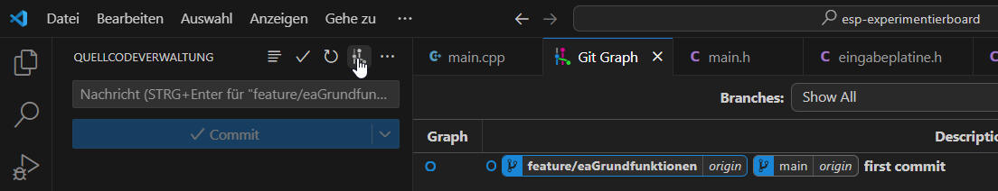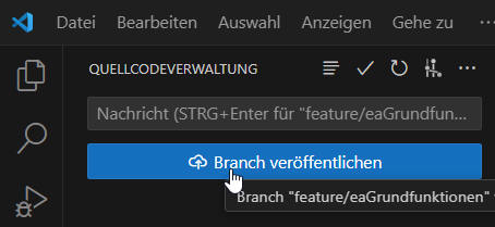 Damit werden die Quellcodeänderungen an den aktiven Branch