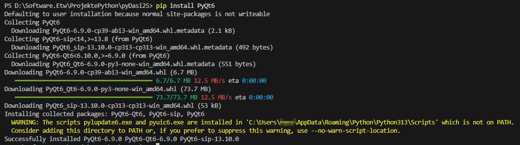 PyQT6 Library zur GUI-Progammierung installieren
