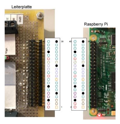 mit der Belegung der Stiftleiste des Raspberry Pi, so dass auch ein