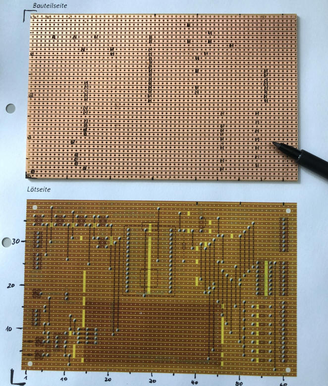 Leiterbahnunterbrechungen mit Filzstift markieren -- kontrollieren --