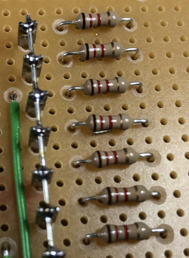 7) Widerstände symmetrisch biegen und in einheitlicher