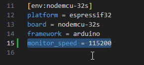 Durch Ergänzung der platform.ini wird sichergestellt, dass der Datenaustausch zwischen ESP32-MCU und VSCode mit einheitlicher Bitrate funktioniert.