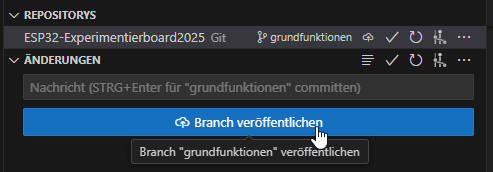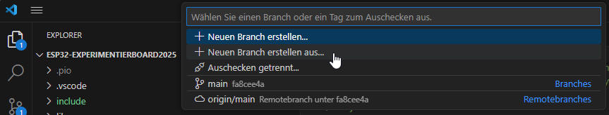 originalen Hauptzweig ein neuer Arbeits-Branch angelegt und benannt (hier