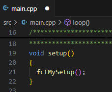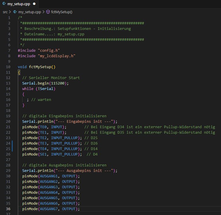 Für das vorliegende Projekt werden die notwendigen Setup-Vorgänge in eine Datei my_setup.cpp verlagert.
