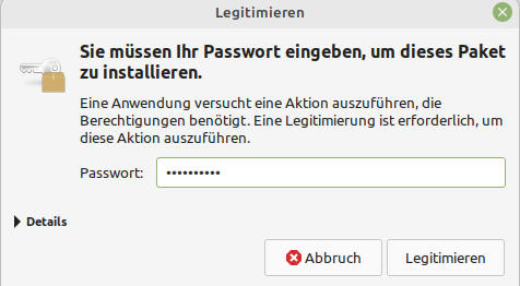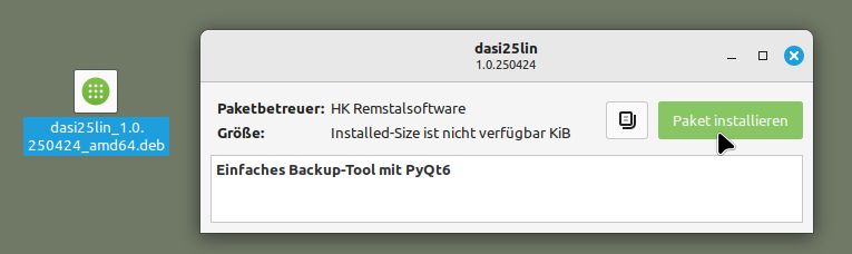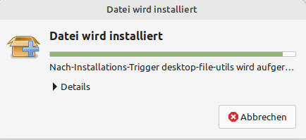 Entpacken und Ausführen des deb-Pakets (Doppelklicken)