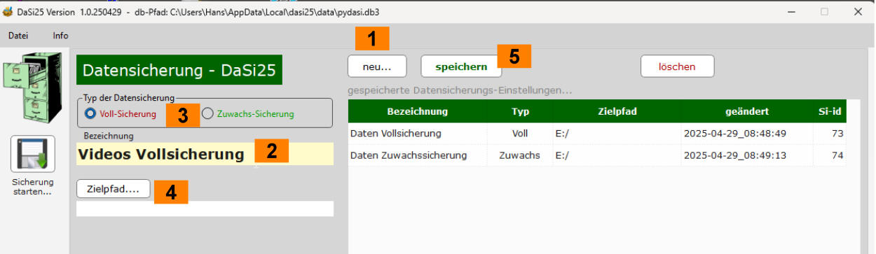 Neue Sicherung erstellen