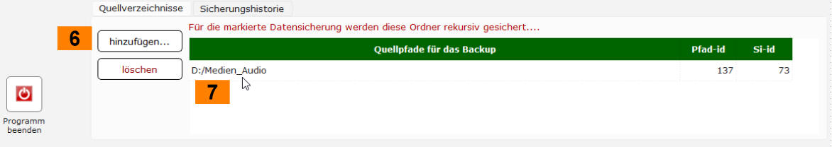 markierten Datensicherung zugewiesen und anschließend in der Liste angezeigt