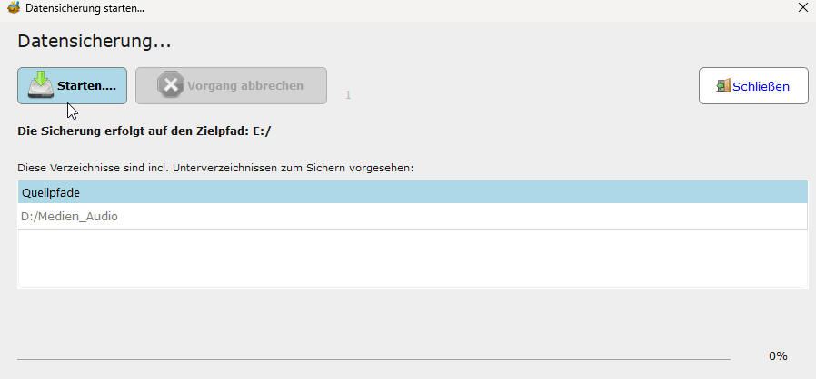 Zunächst soll eine einfache Datensicherung aus einem Quellordner erstellt und durchgeführt werden.