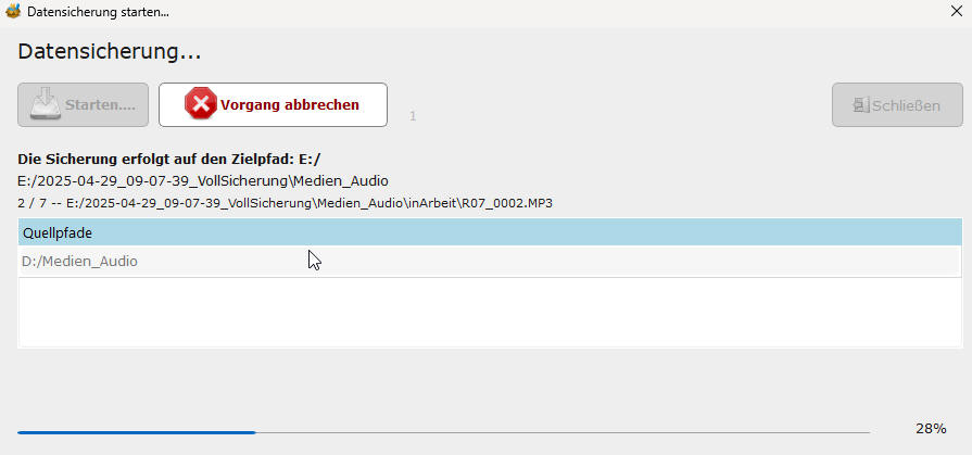 Anzeige während der Sicherung -- Abbruch ist möglich