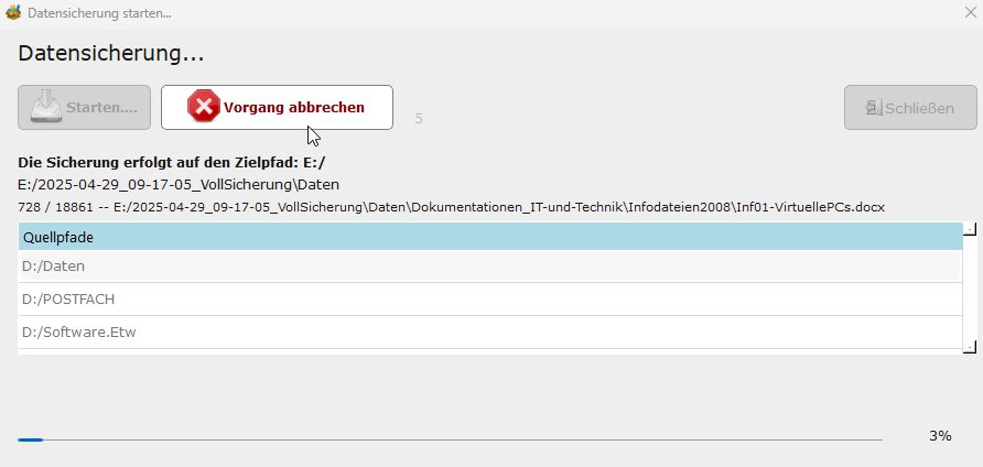 Unterbrechen ist zwar möglich, ergibt jedoch eine unvollständige Sicherung.